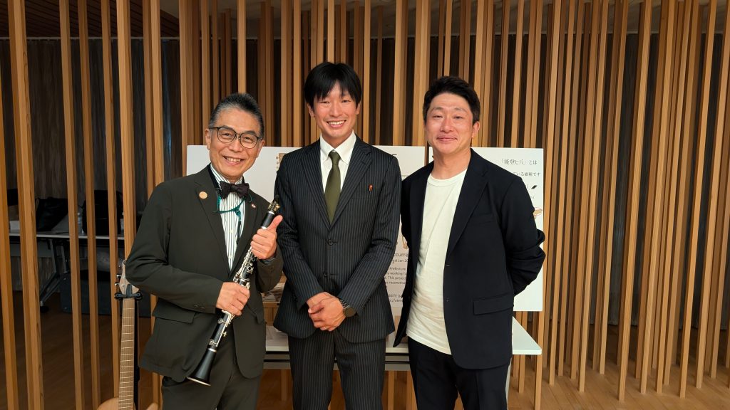ヤマハの仲井さんとも初対面。世界規模での楽器材の取組のお話しが印象的でした。