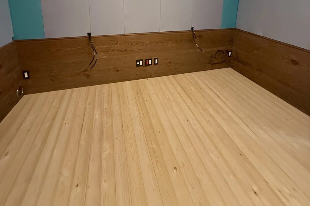 そしてインタビューを行ったMUSIC inn Fujiedaの3階に、オークやクリ材のフローリング材もフルタニランバーとして寄贈させていただきました。無垢板のぬくもりを感じながら是非、施設利用をしてください。